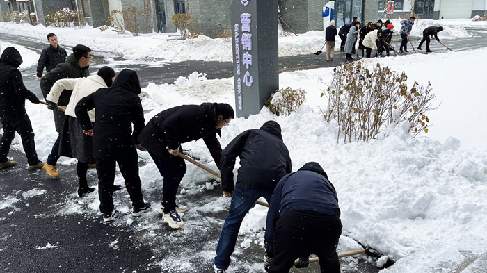 集團(tuán)黨委積極響應(yīng)市委關(guān)于《讓黨旗在應(yīng)對冰雪天氣工作第一線高高飄揚(yáng)》的倡議,自11月7日起連續(xù)兩天組織黨員,并帶動團(tuán)員、廣大員工在航空產(chǎn)業(yè)園區(qū)開展積雪清掃行動,充分發(fā)揮黨員先鋒模范作用,以主力軍、突擊隊(duì)的實(shí)際行動踐行共產(chǎn)黨員的光榮使命。