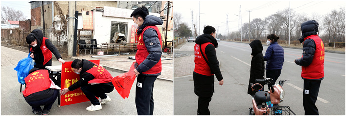 民主街道的工作人員為志愿者們及時(shí)送餐,保證大家吃上一口熱乎飯;工業(yè)公司黨支部為志愿者們準(zhǔn)備了手套、暖寶寶、口罩等物品,滿足大家御寒需要。